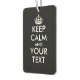 Custom keep calm and your text car air freshener. Stylish black or custom colour. Create your own funny keep calm and carry on parody design. Vintage keepcalm typography template with black crown. Cute examples: Keep calm and party on. Keep calm and sparkle on. Keep calm and drink coffee. Refresh your vehicle with different cool auto scents to mask dog / pet smell and other dirty stinky odours. Unique novelty gift idea for men and women. Design your own for dad, mum, mother, father, uncle, grandpa, brother, son, sister, wife etc. Custom air refreshener with customisable keepcalmandcarryon text. Make it smell like a fresh new car, black ice or the sea. Double sided design. Make your own slogan, spoof or saying.