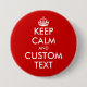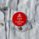 Custom Keep calm large round red pinback buttons. Create your own funny Keep calm and carry on parody. Big size pin with modern typography and crown. Customizable template design.