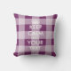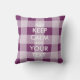 Custom Keep calm and your text throw pillow with plum chequered gingham pattern. Cute home decor for bedroom or sofa. Make your own funny keep calm and carry on parody design. Customisable vintage typography template with crown. Cosy decoration print with personalizable background colour. Create your own humourous version by editing this trendy double sided template. Keepcalm spoof examples: Keep calm and party on. Keep calm and love me. Keep calm and get married.