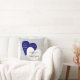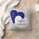 Custom Keepsake Wedding Pillow, light grey with white pinstripes. Personalise with Bride & Groom's Names, and Anniversary Date, Text is on a label made of one navy blue heart and one white heart merged together, with the following quote: Two hearts become one