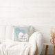 Custom Keepsake Wedding Pillow, light grey with white pinstripes. Personalise with Bride & Groom's Names, and Anniversary Date, Text is on a label made of one pale blue heart and one white heart merged together, with the following quote: Two hearts become one