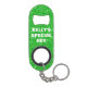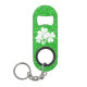 Kelly green glitter background with three white clovers on front. *Customisable text on back.
