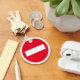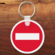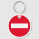 Custom key chain with red STOP traffic sign. Custom button key chain with no entry icon.