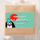 Custom kids 1st Birthday water bottle labels with funny penguin and colourful red balloon plus name. Personalised cheerful DIY bottle sticker template. Stylish script typography for name and date of baby girl or boy. Use as classy table decoration or thank you favour for guests at the party. Neutral template design with customisable background colour. ie pastel blue, light grey, purple or soft yellow.