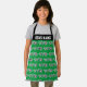 Custom kid's apron with cute soccer ball sports print. Personalized kitchen and cooking aprons in green or any color. Funny ball pattern template with bold typography lettering. Add your own name or quote. Create your own unique Birthday party gift for son, daughter, nephew, brother, sister, friend, cousin. Available in small and large sizes for adults. Also great for BBQ, children's dinner party, art & crafts work, drawing, painting etc. Green or custom color background. Suitable for boy or girl.