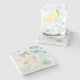 The coasters are gorgeous, a quality feel and heavy weight. They look like a precious archeological find. A rustic stone juxtaposed with a modern floral black and white print. I like the way the print goes slightly imperfect on the cut stone edges giving them a kind-of natural beauty.