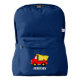 Custom kids backpack with red toy dump truck image. Personalised backpack with dumptruck construction vehicle. Add your name rucksack for boys Make your own bag with personalizable name. Available in different colours. Custom school supplies for children. Add your own name, monogram initials, funny quote or slogan. Great accessory for school books, sports, travel trips and more. Available in red blue black grey purple and more colours. Modern typography. Create one for Birthday of son, grandson, nephew etc.
