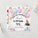 The front design features colourful balloons, sparkles, and a magical party layout where you can add your child’s name, age, and party details.
