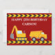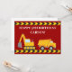 Cool custom construction excavator and dump truck happy birthday card for a boy who loves yellow construction vehicles in black and yellow. Fun red vehicle card for kids who love cars and trucks. Customise with your kid's name under the black and yellow caution tape with a personalised happy birthday message including their name and age.