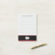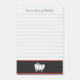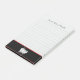 Lined stickies with custom script text at the top for your name, optional lines and an elegant set of black and white silverware on a napkin at the bottom on a red and black ribbon on a light grey background.