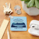 This cool custom lake house keychain features a serene blue river surrounded by trees and your personalised text for a family reunion, camping trip, or summer vacation home rental. Customise with your last name or other group name.