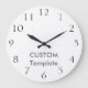 Custom LARGE 10.75" ROUND Wall Clock, Grade-A acrylic Blank Template. CALHIC PRESSED Font - All 12 Hours Templated. All hours option also available in the Shop plus dozens of font options. CUSTOMIZE: Simply select "Customise" then delete "CUSTOM Template" & begin to personalise your clock. IF YOU WISH TO CHANGE THE SIZE OR COLOR OF THE NUMBERS: Simply "select all" in Edit Options, then click on the Font Size or Colour drop down menus to change them. Design your own personalised, customisable wall clock. All font and style options available as templates. Great for a birthday, Christmas, Father's Day, Mother's Day or other celebration gifts for him, her, a teenager, a boss, work colleague, a friend, or for your home or office.