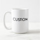 Custom Large 15oz strong, ceramic Classic White Mug, 3.4" diameter x 4.5" high. 11 oz or 15 oz options. Design your own mug. Microwave and dishwasher safe. FDA food and beverage safety approved. For tea, coffee, hot chocolate or other hot or cold beverage. Design your own.