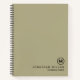 Custom large spiral hardcover notebook features a simple monogrammed design in a trendy sage green and black colour palette. Personalised name presented in the lower right-hand corner in stylish simple font with a complimentary minimal monogram medallion.