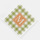 Farmhouse country style autumn pumpkin leaves green and off-white ivory gingham plaid pattern, with the option to customise or personalise with a family name monogram of your choice. Fun pretty fall coloured paper napkins for on your in fall colours decked table and get in the mood for fall season, the Thanksgiving holiday and Halloween.