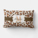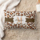Leopard print design personalised lumbar pillow in brown, tan, and cream with a brown stripe, white edged with brown banner that you can customise with your name and monogram initial!