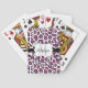 Chic, modern, pretty wild animal big cats leopard print playing cards in purple, black, and white with a black stripe, white edged with black banner you can personalise with a name and monogram initial!