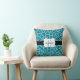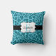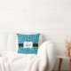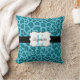 Chic, modern, pretty wild animal big cats leopard print throw pillow in shades of blue with a black stripe and white edged with black banner you can personalise with a monogram initial and name!