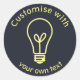Simple and elegant light bulb icon, symbolic of having a bright idea, on dark blue background to customise with your own text.