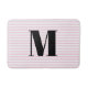 Custom light pink and white stripes pattern personalised monogram initial letter modern elegant chic Bath Mat.