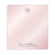 Notepad with light pink satin gradient background. Upload your own logo and customise the template text to create customised notepads for your business or event. You can change fonts and font colours with the customisation tool.