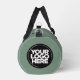 Custom Logo cool organic sage green Name Company Promotional Fitness Duffle Bag featuring a simple and modern template with your business logo, photo or image and your custom name or any personalized text. Perfect for fitness, yoga, workout, exercise. Add your name, website or social network address. No minimum order.