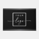 Business doormat featuring your custom logo on a black background with dark grey gradient borders top and bottom.