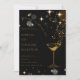 Elegant and stylish invitation card for a cocktail-themed party. Featuring a sophisticated black background with shimmering gold accents, sparkling stars, and a classy cocktail glass illustration, perfect for upscale corporate or social events.