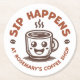 Promote your business with these customizable coasters that feature a charming illustration of a smiling coffee cup, bold typography that says, “Sip Happens,” plus a customizable text placeholder where you can add your shop name. Modify the design by adding your own logo (or use this logo as it is) and your business name to create custom promotional and branding products. Perfect for coffee shop, cafe, or coffee bar owners.