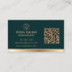 This business card is a sophisticated and professional choice for anyone looking to make a lasting impression. The green and gold colour scheme is timeless and elegant, and the QR code allows you to easily share your contact information and website with potential clients or customers.
