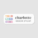 This badge looks professional and it's in keeping with my branding. The magnetic attachment is strong and stays in place all day. The quality of the materials and the colors were exactly as pictured. I couldn't be happier! The printing is clear and easy to read