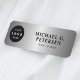 Elegant minimalist modern business corporate executive staff professional identification magnetic or safety pin name tag template with custom company logo over a faux silver metallic gradient background. ++++++++++++ Easy to personalise with your details.