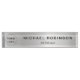 Custom add your own Logo Executive Grey Foil Metallic Stainless Steel Minimalist Business Name Plate with black lettered typography for the monogrammed add your own name and profession or job title. Easy to customise name and business logo.