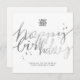 Custom Logo Faux Silver Hand Script White Birthday Card