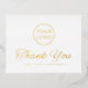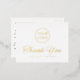 Elegant, white (or any custom colour) business thank you postcard with your custom logo and the text "Thank you" on the front in gold, rose gold or silver foil and your custom text on the back.