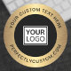 Custom stickers with golden gradient border (printed image with a brushed metal effect simulated in the artwork) and custom logo template. Move and resize the logo with the design tool. Text, font and font colours are customisable. Customise and turn in to product labels, thank you for your business or promotional stickers to promote your company. Follow us on Instagram: @business.perfectlycustom and Facebook: @businessstationery for business related products, news and sales.