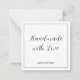 A modern black and white thank you insert card featuring elegant calligraphy text, “Handmade with Love,” paired with a simple message of appreciation. The back includes space for your custom business logo and website, making this a polished and professional way to connect with customers. Perfect for packaging inserts, small business branding, and personalised customer thank-you notes.