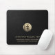 Elevate your meetings with our Custom Logo Leather Print Mouse Pad with Personalised Name Title and Logo. This sleek design features a brushed gold logo at the centre, with space to personalise each mousepad with the individual's name, company name, and title or custom text. The rich black leather print background adds a touch of sophistication to your boardroom or workplace setup. Make each meeting member or employee feel valued with a personalised mousepad that reflects their unique role within your organisation. Perfect for corporate events, conferences, and board meetings.