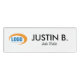 Contemporary name tag design that can be personalised with a logo, name of employee and job title or description.