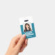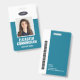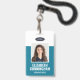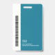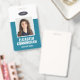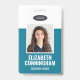 A modern and simple badge that does not distract from the important details. Easy to read from afar. Add a custom logo and company details. Add the employee's name, photo, and professional title. The bar of colour can be modified to match the company's official colours. At the back, add more information such as return address and the employee's ID number. Perfect for oval shaped logos.