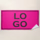 This custom beach towel features a neon pink coloured background with a black frame. A sample logo is placed in the centre. You can personalise the mat and add your own custom company or professional business logo, or your own image of your choice.