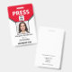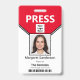 Easily upload your own photo and bar code. Custom press badge with company logo, photo ID and bar code. Customise the job title, your name and company name to your requirements. Reverse has 'If found return to" info. Custom Logo Photo and Bar Code ID Badge. This template photo and QR Code are for demonstration purposes only.