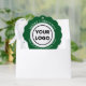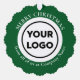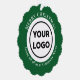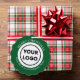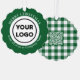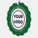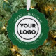 Create your own branded ornament card featuring your business logo, company name, and a custom QR code. Replace the sample logo, text, and URL link (your website, landing page, or profile...) in the sidebar. Your logo can be any colour. Circle shaped logos will work best with this design. Your message and name will appear in curved white text on a green border around your logo. The back of the ornament features a green and white gingham pattern with a green and white scannable code in the centre.