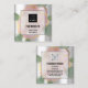 Custom Logo QR CODE Silver Grey Green Rose Leafs Square Business Card