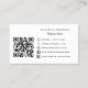 Transparent background colour, add your brand colour. Personalise and add your business logo, name, title and contact information. Add your website url/link to the Qr code. With Facebook and Instagram icons. Black text and icons