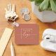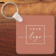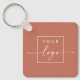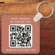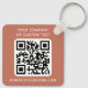 Double sided keychain with your custom logo, QR code and custom text on a terracotta or custom color background. Change fonts and font colors, move and resize elements with the design tool.