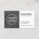 Modern, masculine business cards with template fields for name, company name/title, logo (photo or other graphic) and contact information. On the back and under the logo is a printed dark gray concrete texture. Change background colors, move and resize elements with the customization tool.