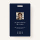 Enhance your corporate security with our Custom Logo Staff Photo Identification Badge. Featuring a customisable employee photo, name, and title on the front, along with your logo, this badge exudes professionalism and functionality. The back offers space for company name and address if lost or found, or personalised text, providing comprehensive identification for your staff. With a sleek navy blue background and grey classic typography, this badge offers a modern, minimalist design suitable for any business environment. Elevate your corporate branding and security measures with our customisable ID badge solution.