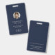 Enhance your corporate security with our Custom Logo Staff Photo Identification Badge. Featuring a customisable employee photo, name, and title on the front, along with your logo, this badge exudes professionalism and functionality. The back offers space for company name and address if lost or found, or personalised text, providing comprehensive identification for your staff. With a sleek navy blue background and grey classic typography, this badge offers a modern, minimalist design suitable for any business environment. Elevate your corporate branding and security measures with our customisable ID badge solution.