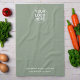 This kitchen towel is personalised with your custom logo and text in a stylish sage green design. Perfect for promoting your brand in kitchens and culinary settings, it combines practicality with effective branding to leave a lasting impression.
